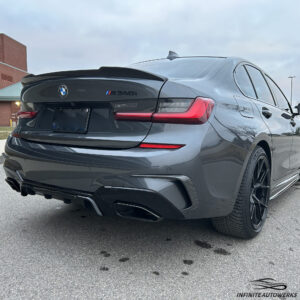 Introducing the BMW G20 3 series M performance style rear diffuser the 2019+ G20 BMW 3 series sedan. This direct replacement part is finished in gloss black and clips into the factory location.
