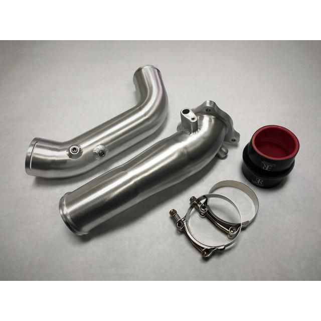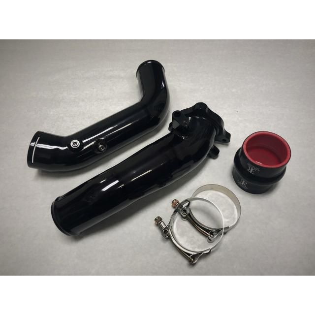 Often ignored, charged intake airflow characteristics greatly affect throttle response, turbo lag and ultimately maximum power potential. Smooth bends and minimal obstructions are ideal. We used 6061 aluminum (lightweight) mandrel bent piping to ensure smooth transitions. The upper pipe features a long smooth transition from 2.5" from the turbocharger outlet to 3" to match the factory throttle body, ensuring a smooth transition much like the factory unit. Our competitor's on the other hand run a 2.5" to the throttle body which causes a "step" right at the throttle plate which is not ideal for flow. The results? Better throttle response and decreased turbocharger lag with our Charge Pipe Kit!