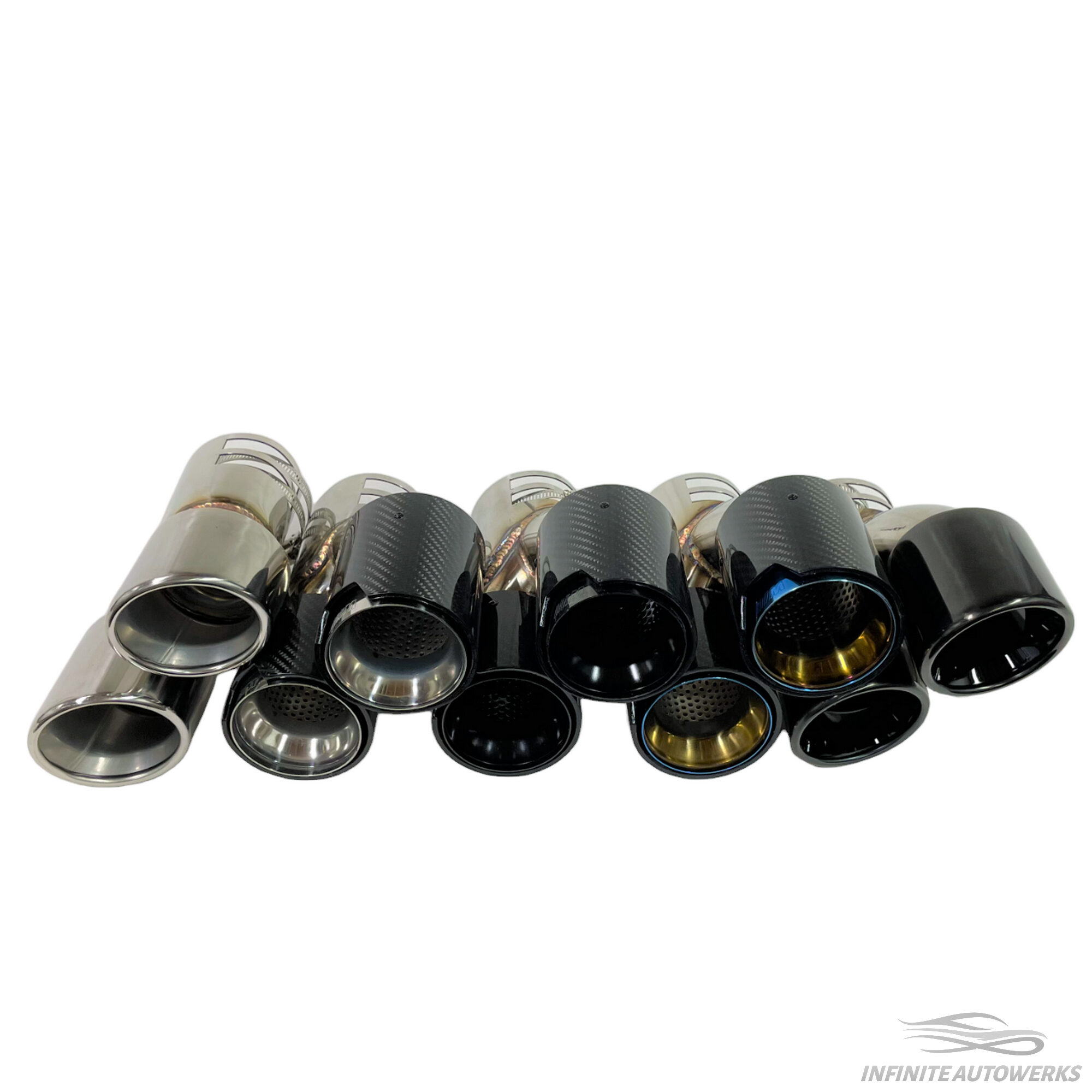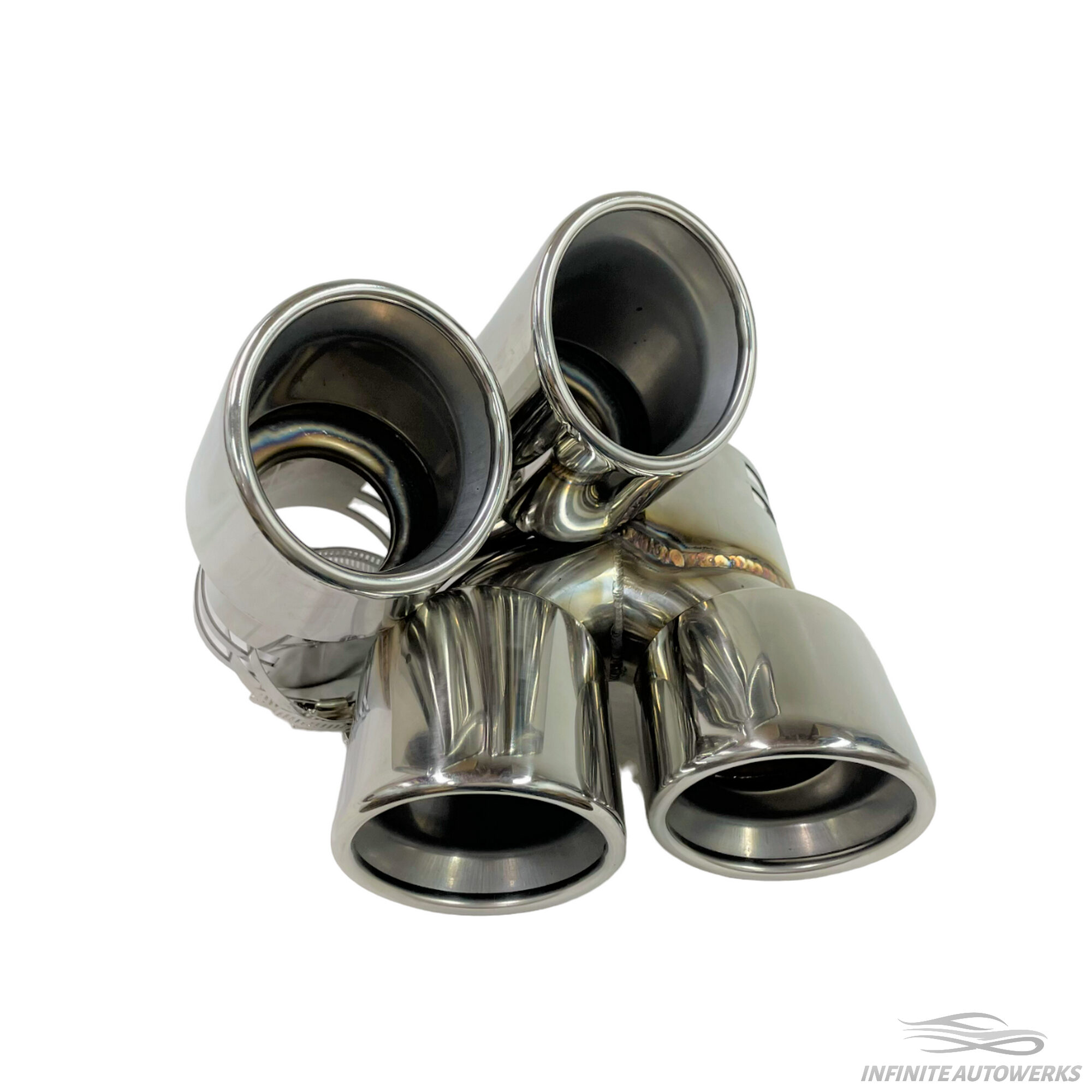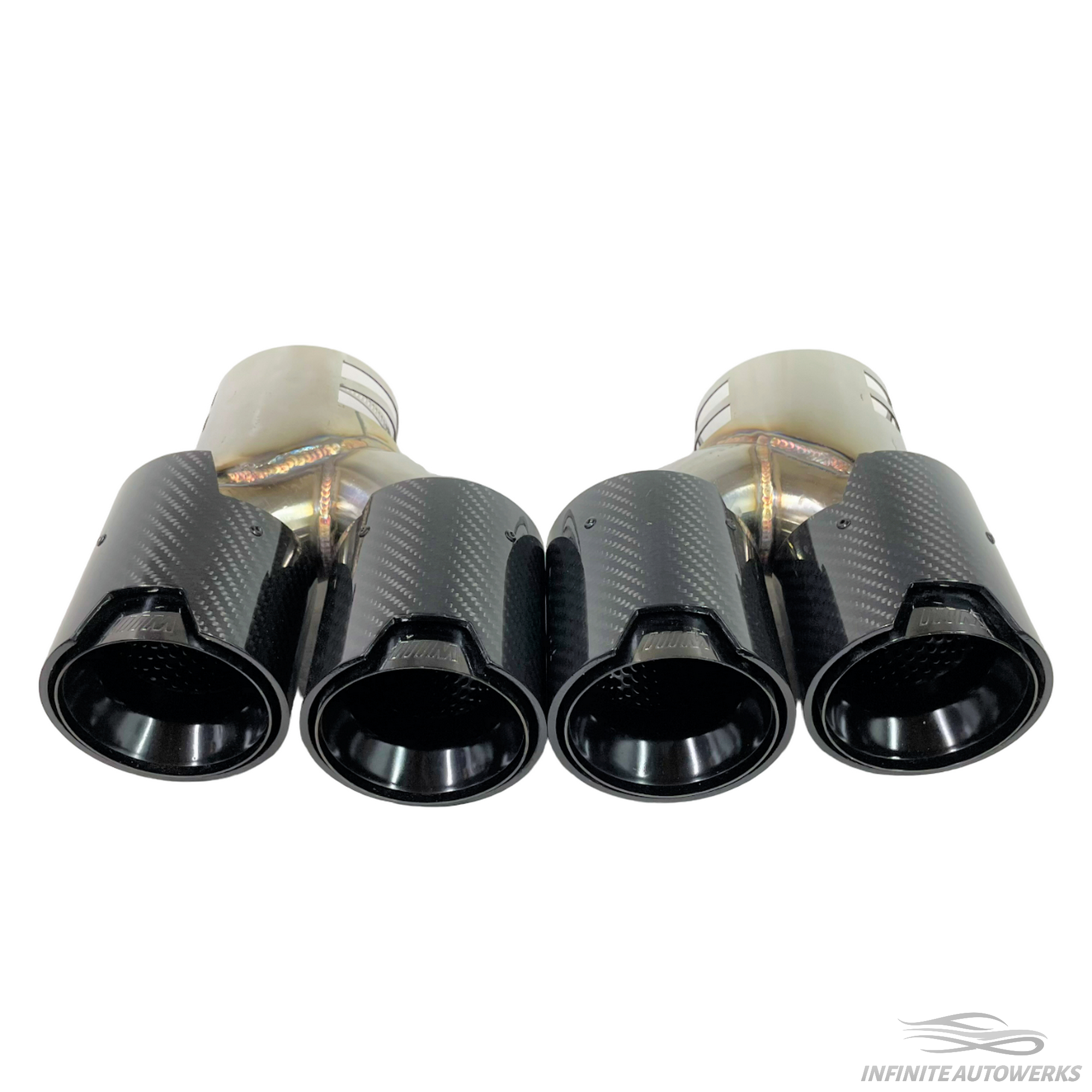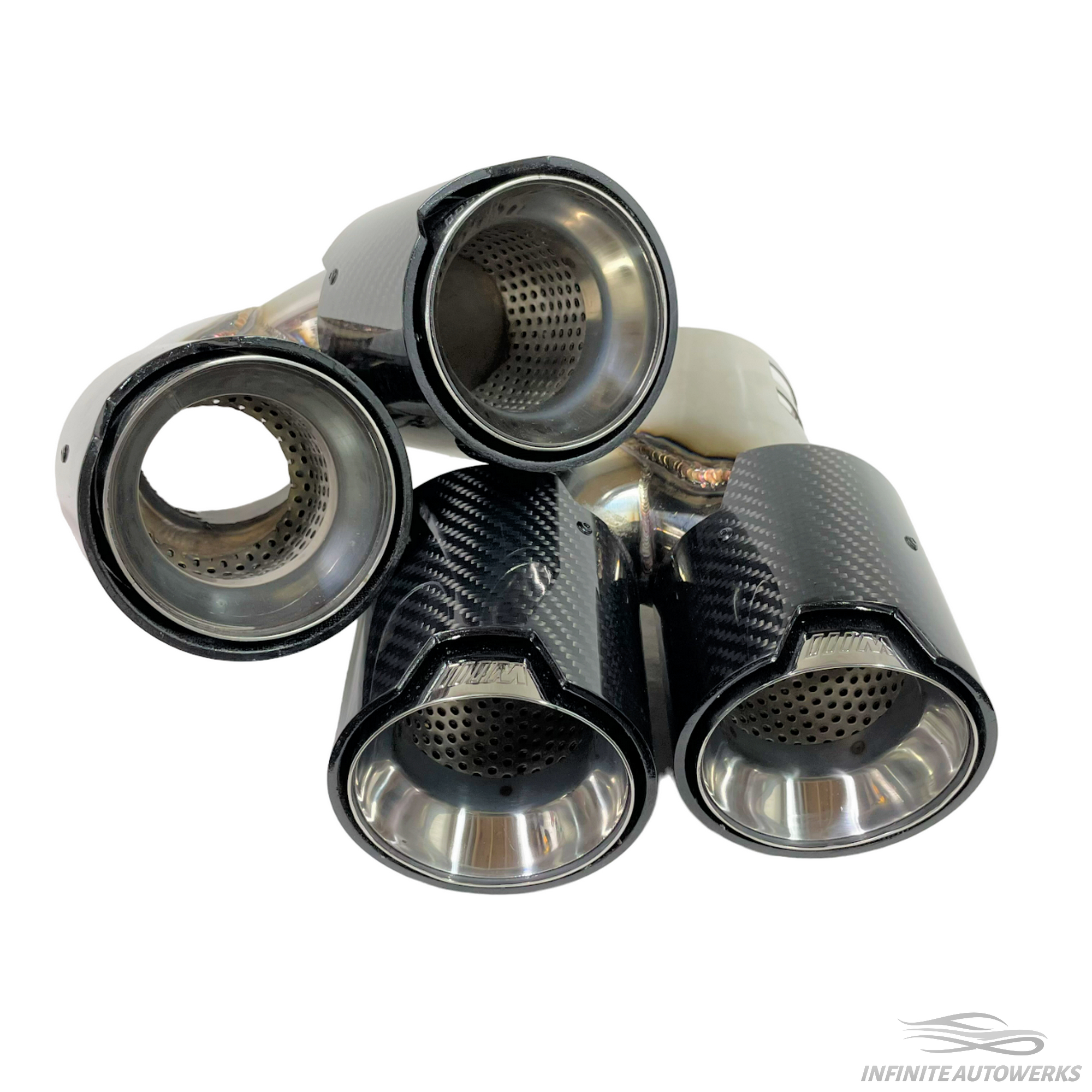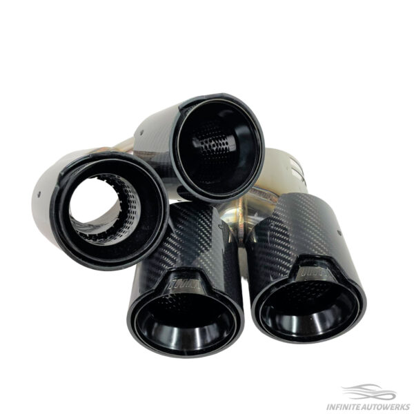 Introducing the Infinite Autowerks BMW G2X Quad tips! The IAW G series quad tips will add the extra aggression you have been wanting to the rear end of your G series BMW. These exhaust tips will clamp onto the existing factory muffler which ensures perfect fitment. The clamp style gives you the ability to change how much of the exhaust tip extends past the diffuser. The exhaust tips are 93.7mm (3.7") in diameter per tip and are easy to install as it does not require you to drop the factory muffler or tighten tedious set screws.