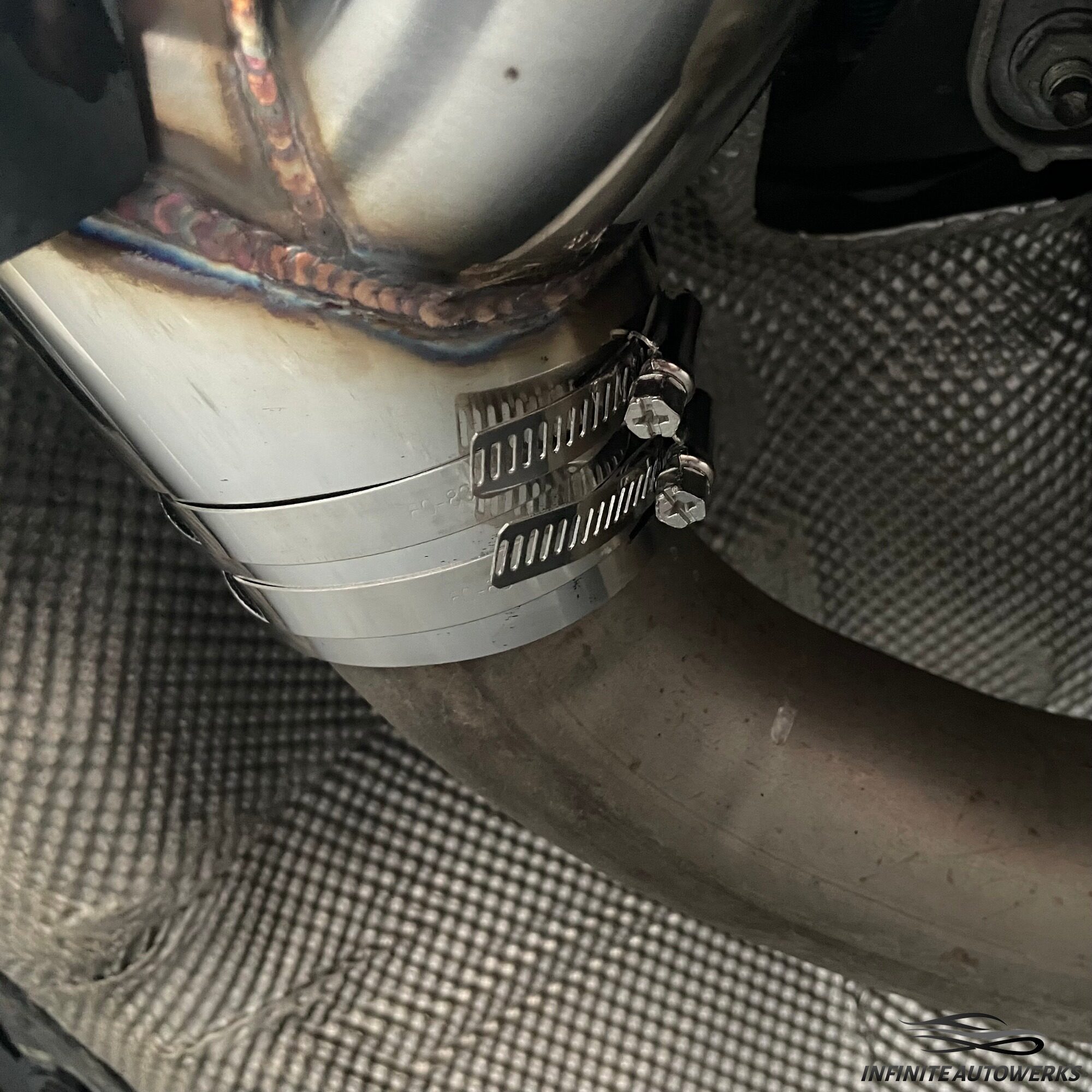 • You may have to adjust the way the tip sits on the exit pipe to get the correct alignment as you tighten clamps