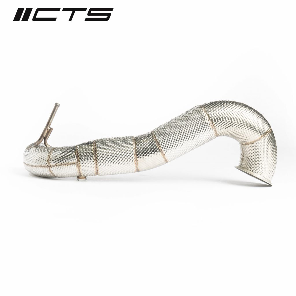 Unfortunately, the factory downpipe that comes as standard equipment in your car was designed for anything but performance. The factory downpipe severely restricts exhaust flow and therefor has adverse effects on horsepower, especially once your car is tuned. The CTS Turbo 3.5″ race downpipe will allow for your exhaust gases to flow smoothly, freeing up the additional ponies that you want, all while look amazing.