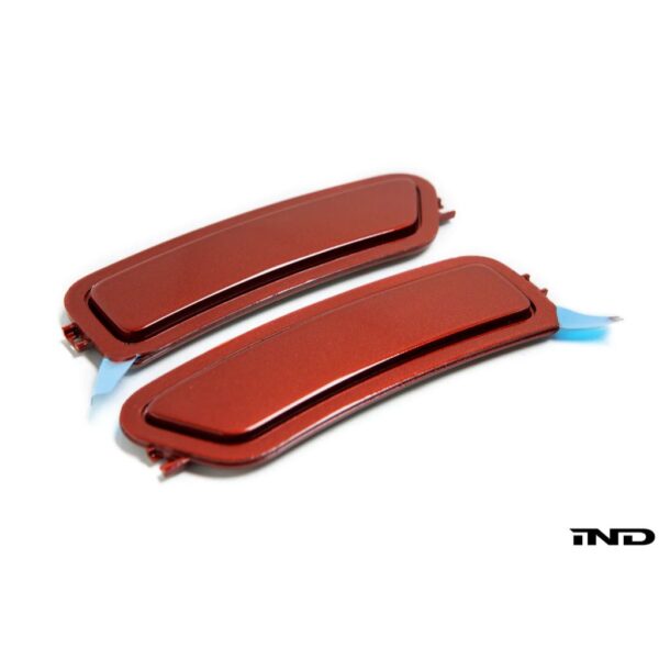 Every detail of your new BMW should be as sleek as possible; that’s where IND’s painted rear reflectors come in. Everything about these reflectors is brand new, from the BMW factory cores to the custom car matched factory BMW paints. With most factory BMW colors offered, you’ll have a nearly perfect paint match every time. What truly makes these stand out is our dedicated and experienced staff. With a combined 30+ years of experience, your painted reflectors will come to you in pristine condition. Each reflector is meticulously hand sanded, primed, painted and cleared, as well as polished using Ropes equipment. The icing on the cake? They’re each finished off with a coat of Adam’s paint sealant. Don’t settle for the ordinary. Bring out the best in your BMW with IND’s painted rear reflectors (Reflector Deletes).