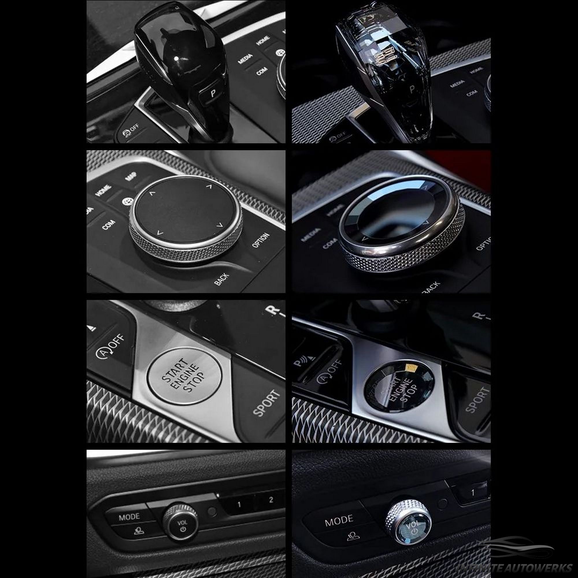 BMW OE Style Crystal Kit G Series 4-Piece Kit – Shift Knob + Start Button + Media Dial + Volume Knob