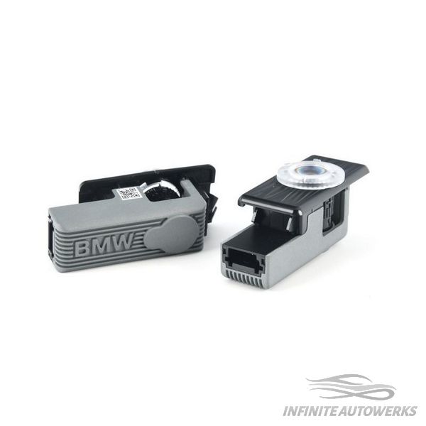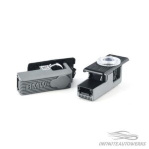 LED Door Projectors (length - 50mm).  Set of 2.  BMW LED Door Projectors make entering your vehicle an experience all on its own via a projected image displayed on the ground beneath the front doors.  Direct replacements for the existing puddle lights.  For even more customization, the image is interchangeable by inserting different slides into the projector.